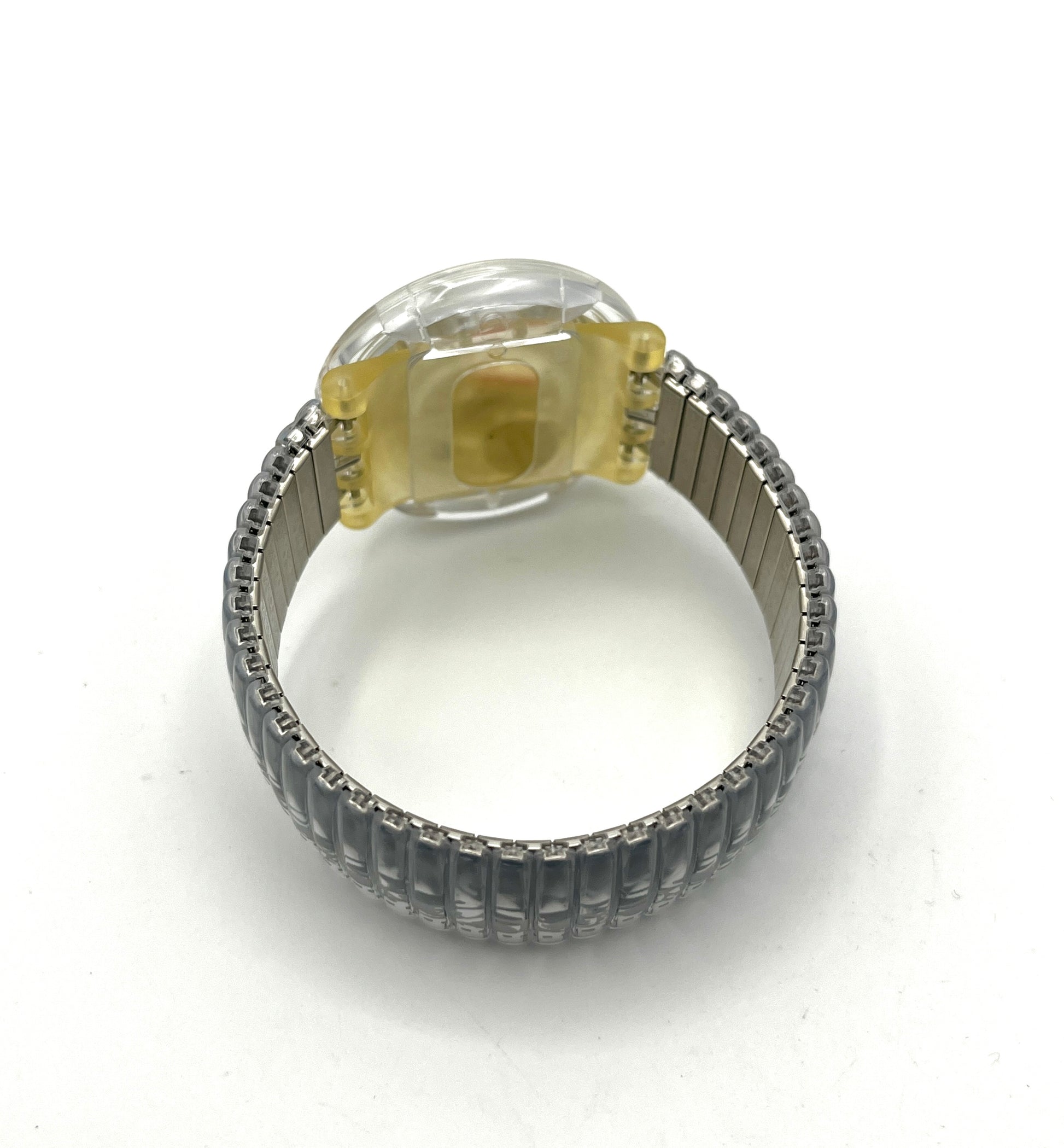 Rare and Sought-AfterThe rare Midi Pop Swatch EMBROIDERY from 1998 is one of the very few Pop Swatch watches with a flexible strap. The open dial allows a clear view of the movement. The flexible metal strap can be shortened as desired.