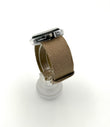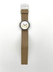 Watch with beige face and brown strap on white background