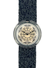 Unique Design – Features a blue-gray knitted surface on the leather strap.