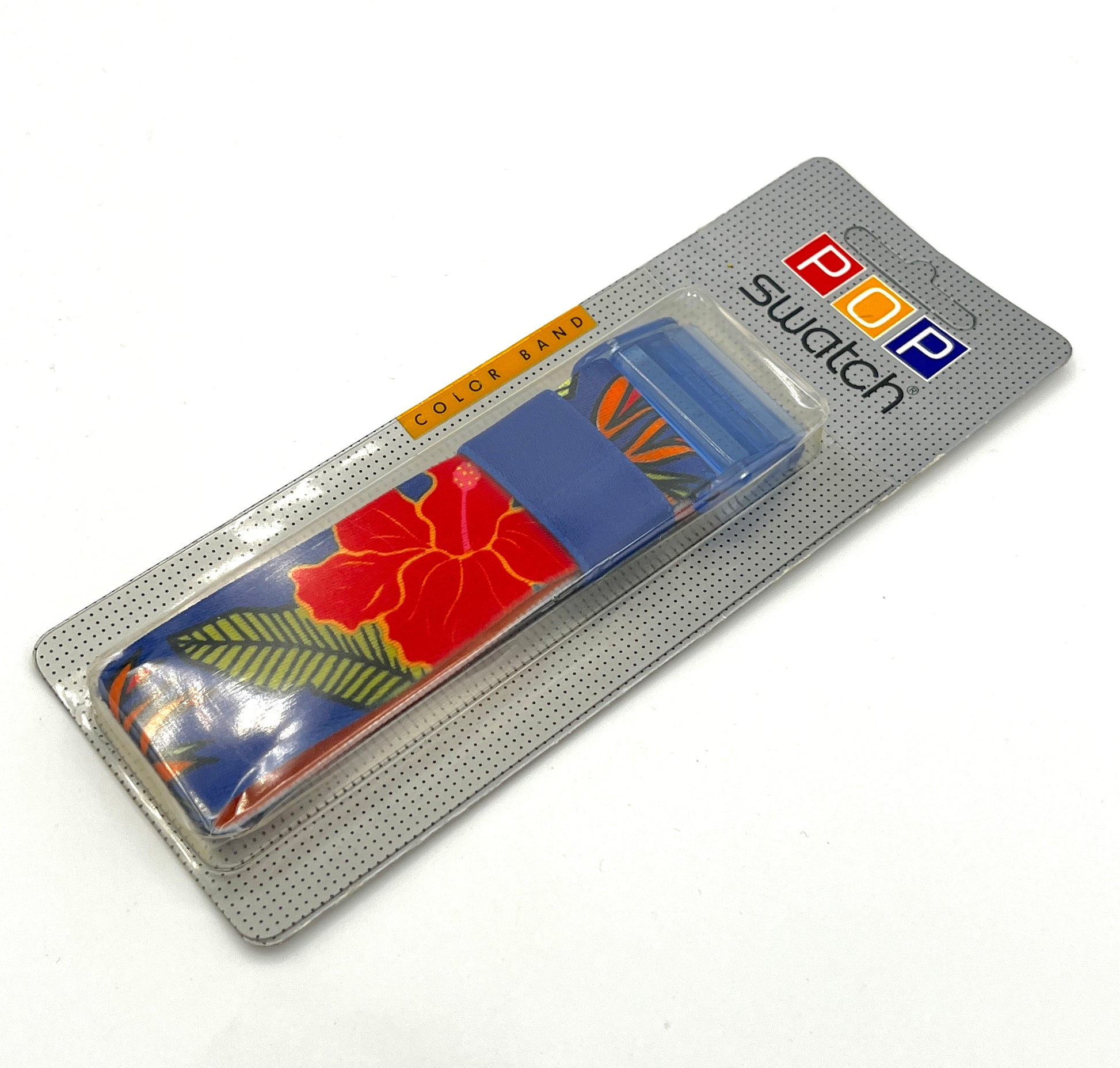 Classy Design – CHICHICASTENANGO is a pretty Pop Swatch textile strap. Exotic flowers are depicted on the blue strap, and every Pop Swatch with a ring fits the floral strap.