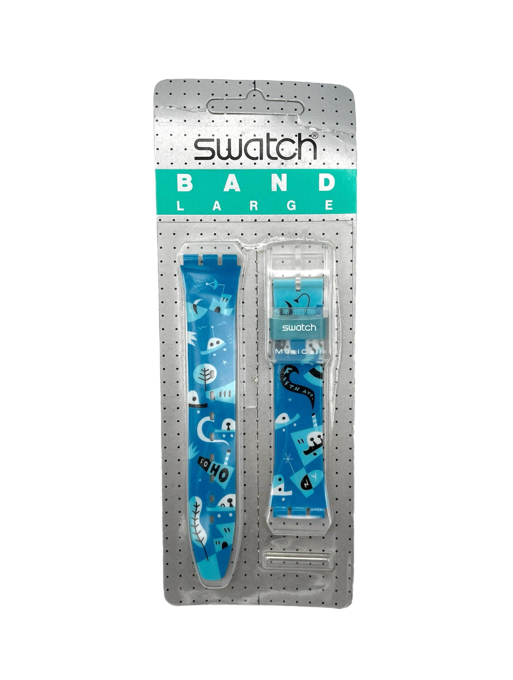 Authentic Swatch Replacement StrapThis original Swatch plastic replacement band comes from unsold 90s store stock. It is the original strap for the Swatch Musicall RUNNING TIME SLK107 from 1996. Wide Compatibility – Fits all Swatch models with a 17mm strap attachment, including Gent, Scuba, Chrono, Automatic, Irony, Big, Musicall, Solar, Midi Aqua Chrono, Stop Watch, and Alarm Chrono