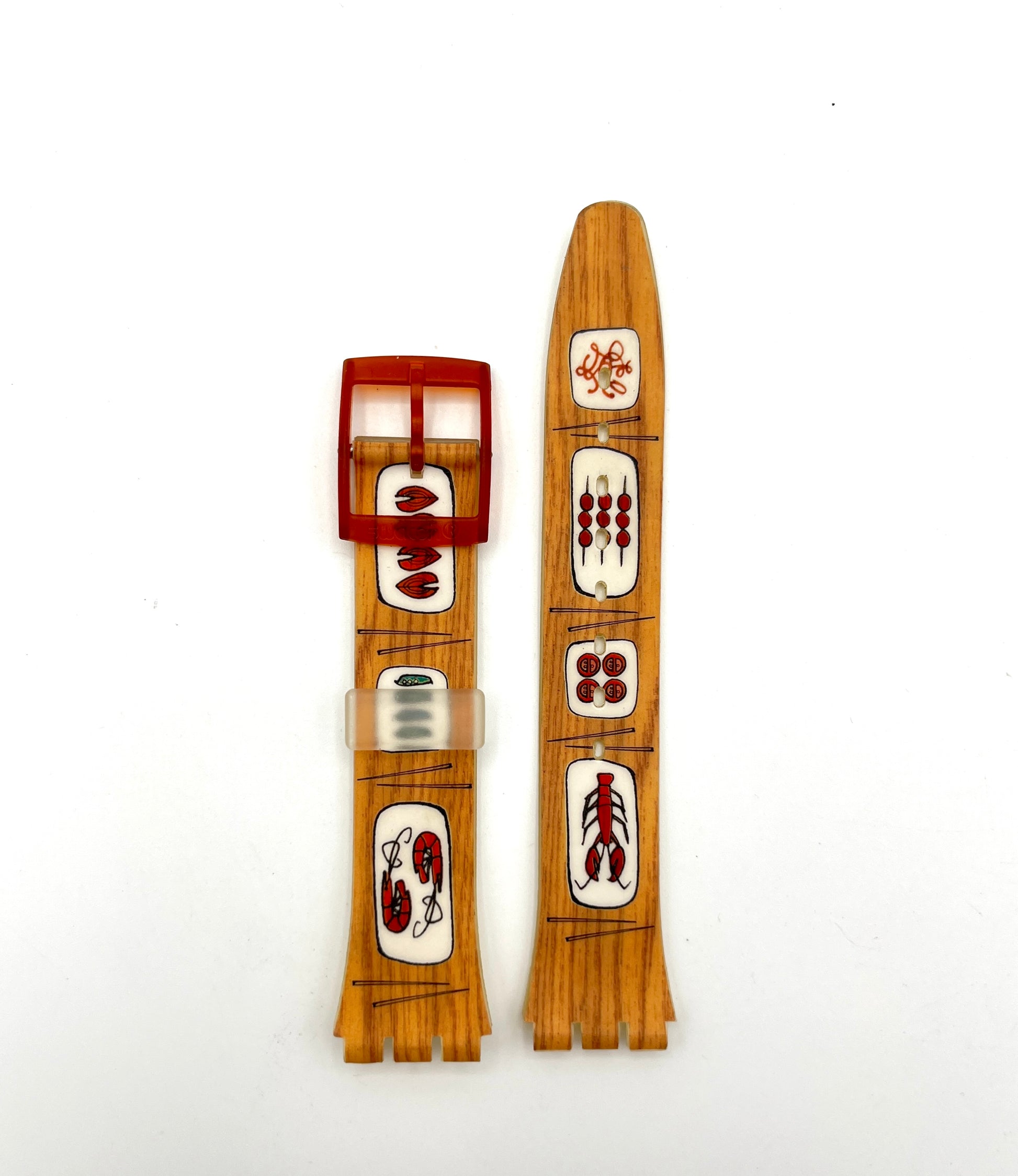 Authentic Swatch Replacement StrapBon appétit! You'll acquire a taste for the Swatch HORS D'OEUVRE AGF112 plastic watchband. The brown band is printed with plates displaying various dishes.