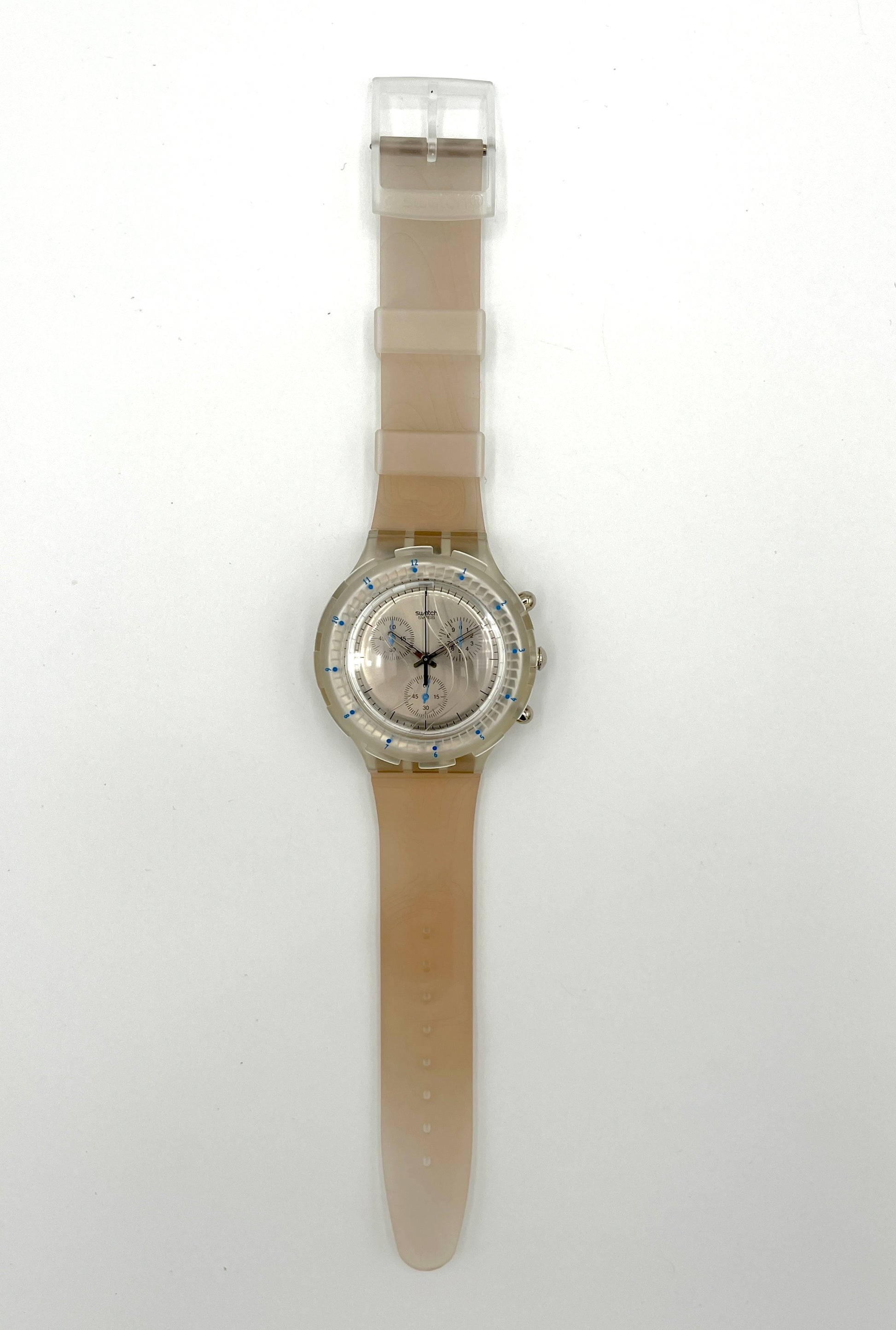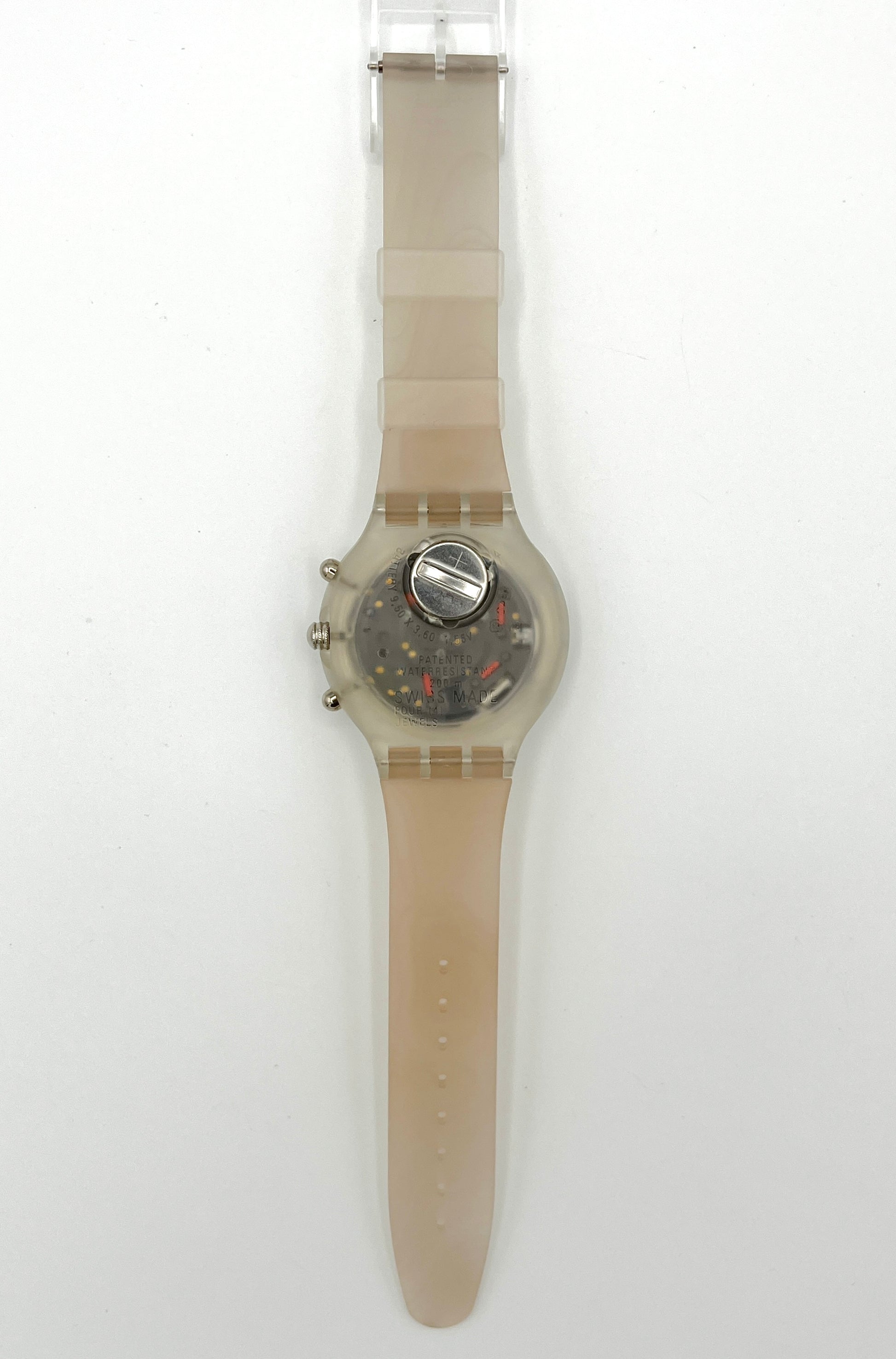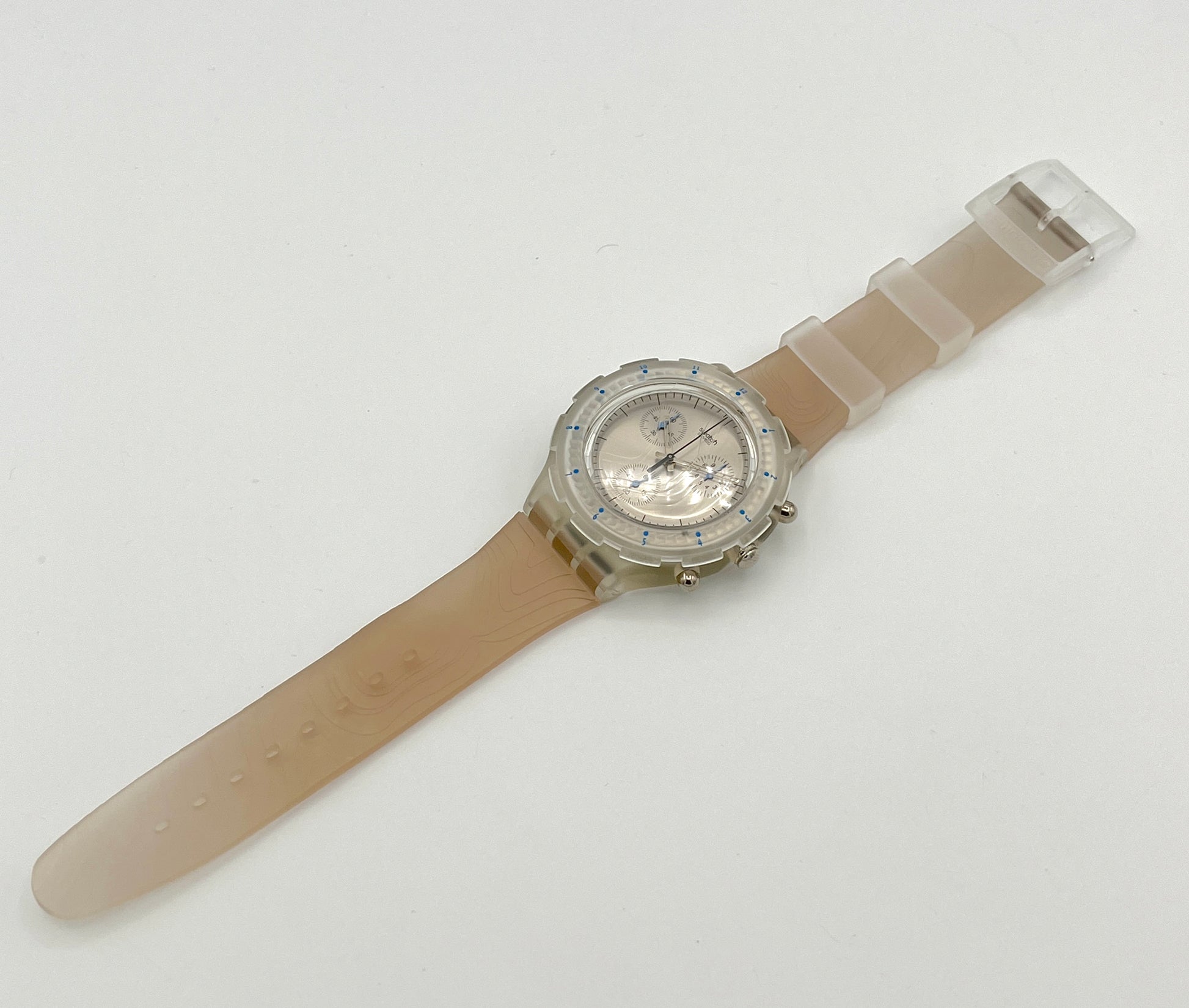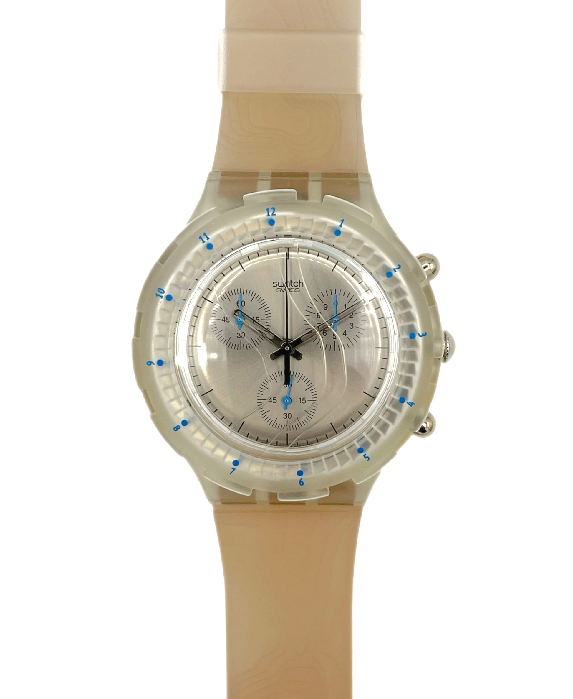 Water-Resistant Design – This Swatch Aqua Chrono CARTOGRAPHIC from 1997 stands out thanks to the cartographic relief on its plastic strap.