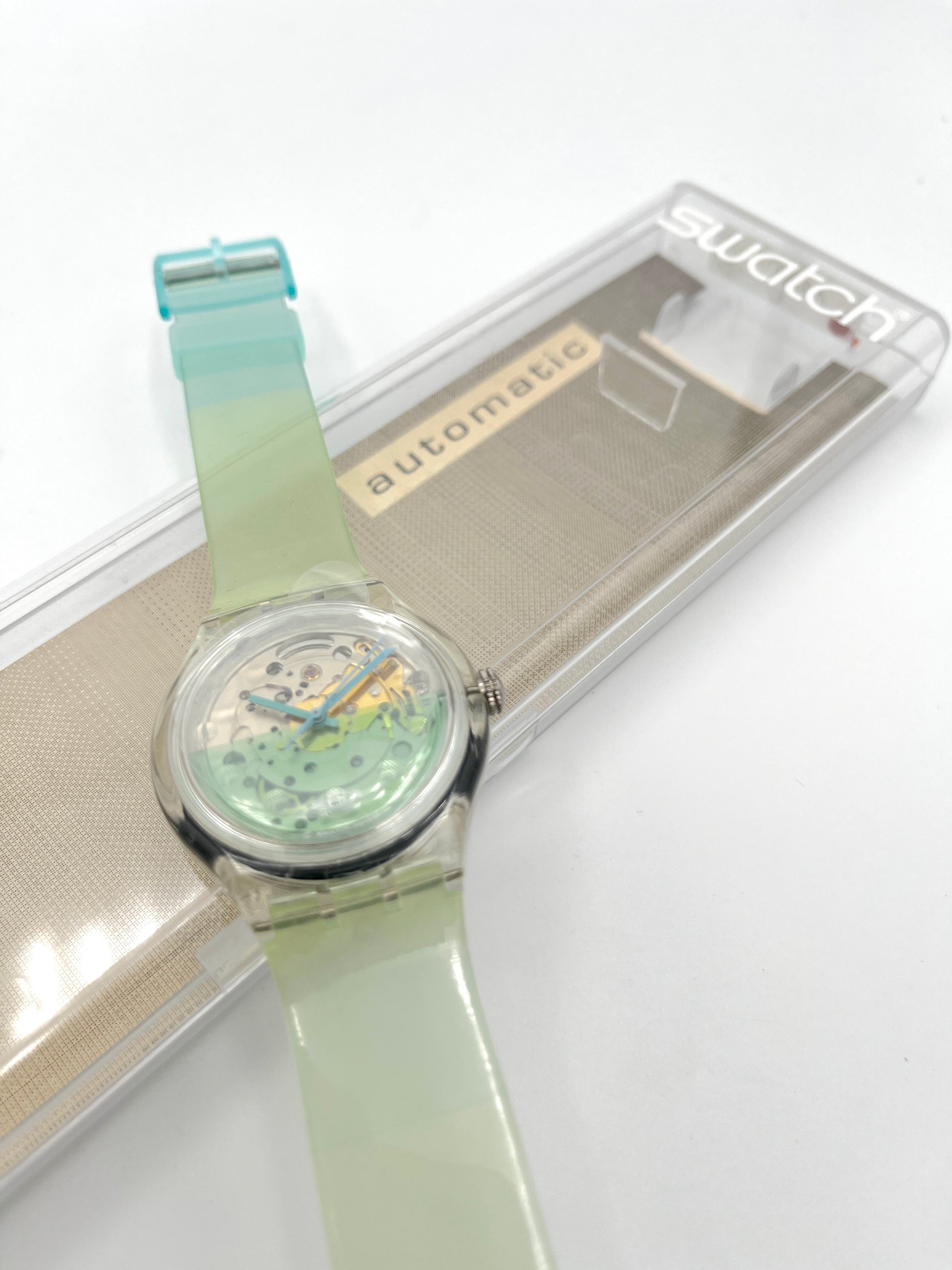 Mintgreen transparent design – the skeleton dial allows a view on the inner mechanical system