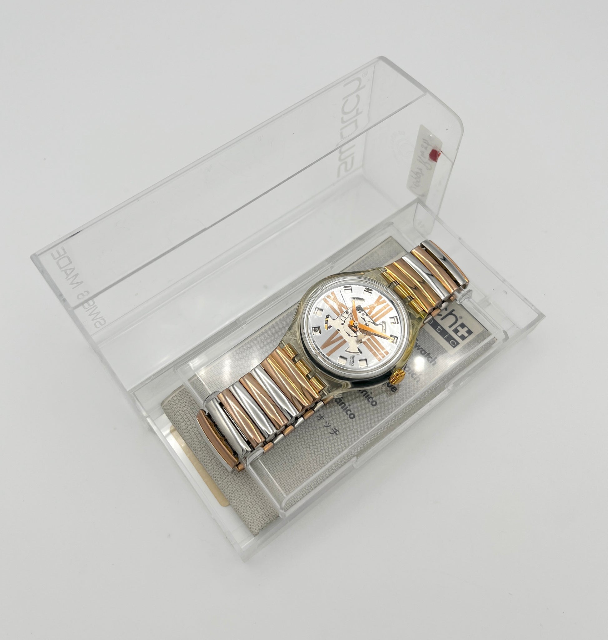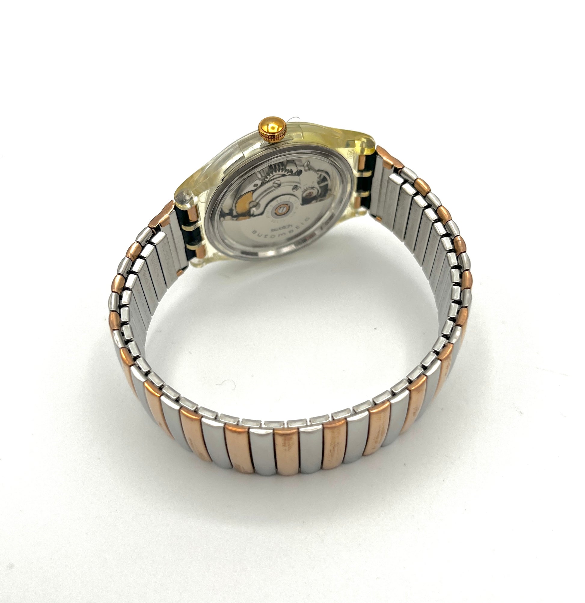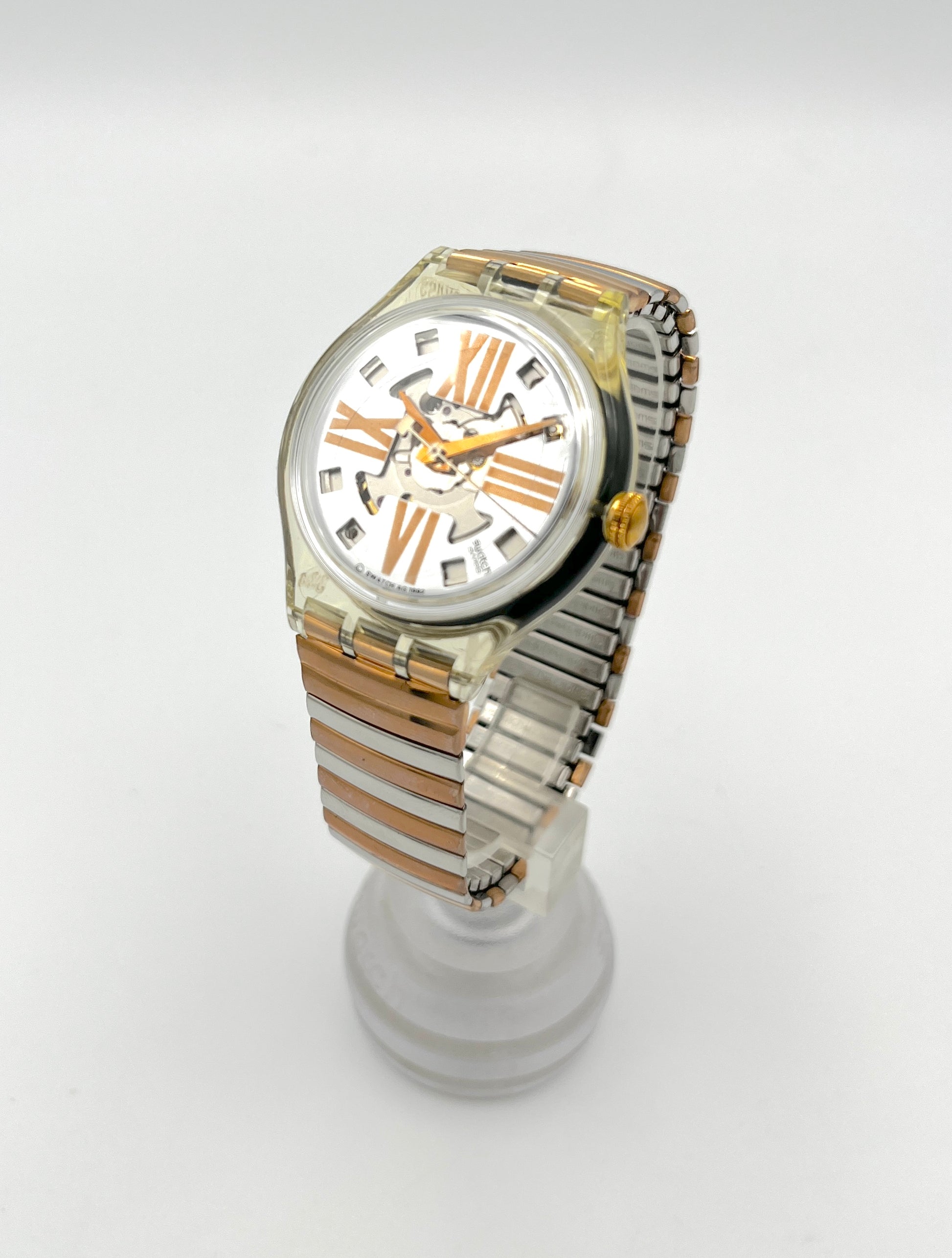 Swatch Automatic COPPER RUSH 1993 – Classic silver and copper design with Roman numerals.