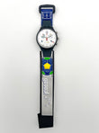 Swatch watch with colorful design on a white background