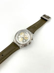 Olive Green Design – Dial and leather strap in rare olive green with glowing hand tips