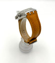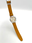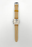Elegant Beige Design – Beige dial and mustard yellow leather strap with light brown dot pattern.