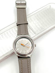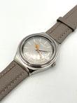Gray Textured Leather Strap – Stylish and comfortable, adding a refined touch to the overall design.