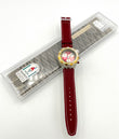 Dive & Chrono Functionality – Combines Scuba 200 features with a chronograph for versatile use. The watch has a rotating bezel for determining dive time, a chronograph function for stopping time, is water-resistant, and has an accurate quartz movement. This model impresses with the striking red of the dial and bracelet, as well as the contrast provided by the gold-colored bezel.