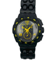 Black watch with yellow accents on a white background