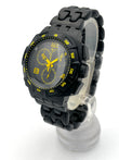 Black Yellow Design –All indices and hands on the matching dial are bright yellow for a pop of color, and the watch also features a rotating bezel.