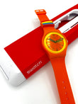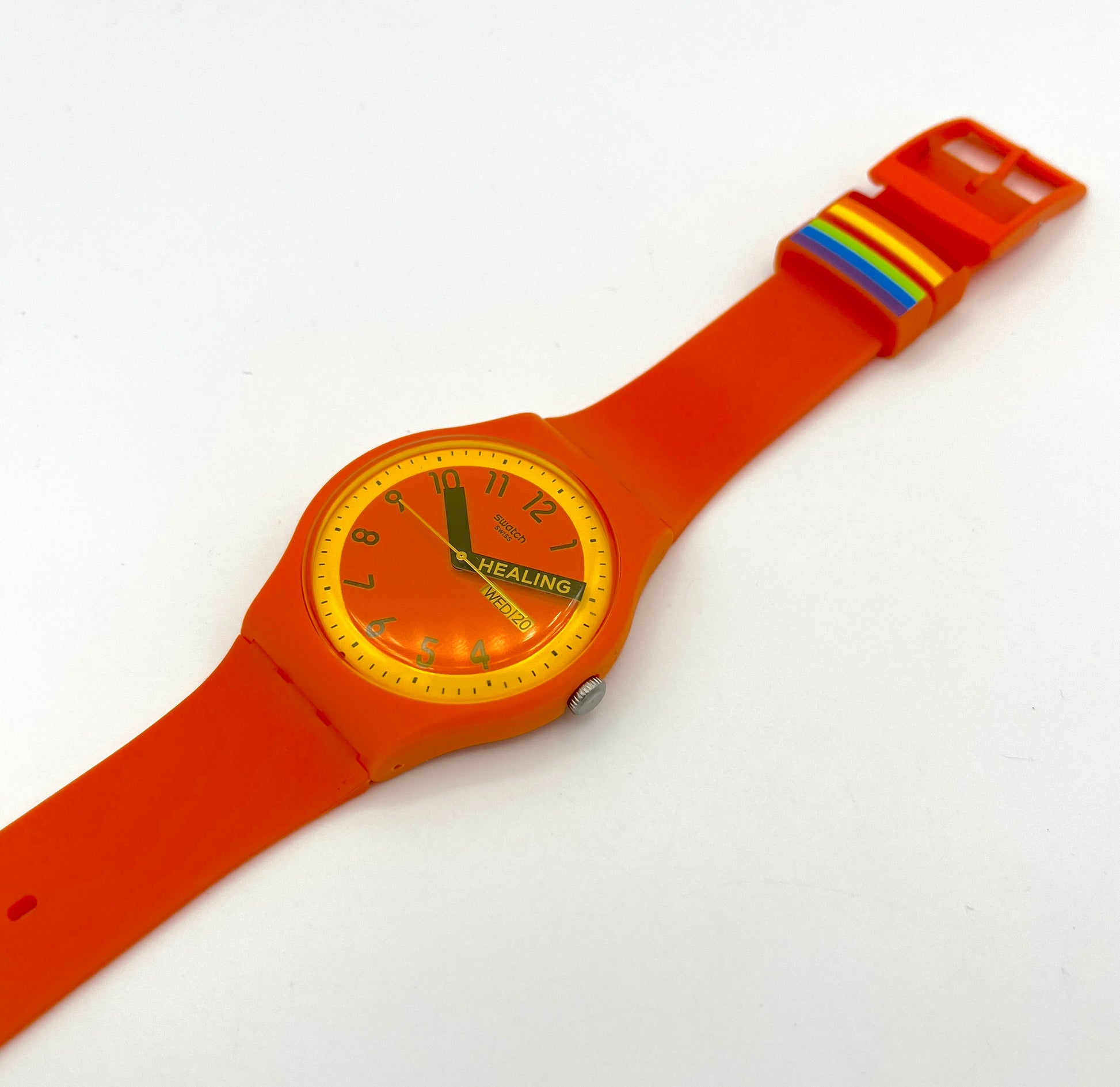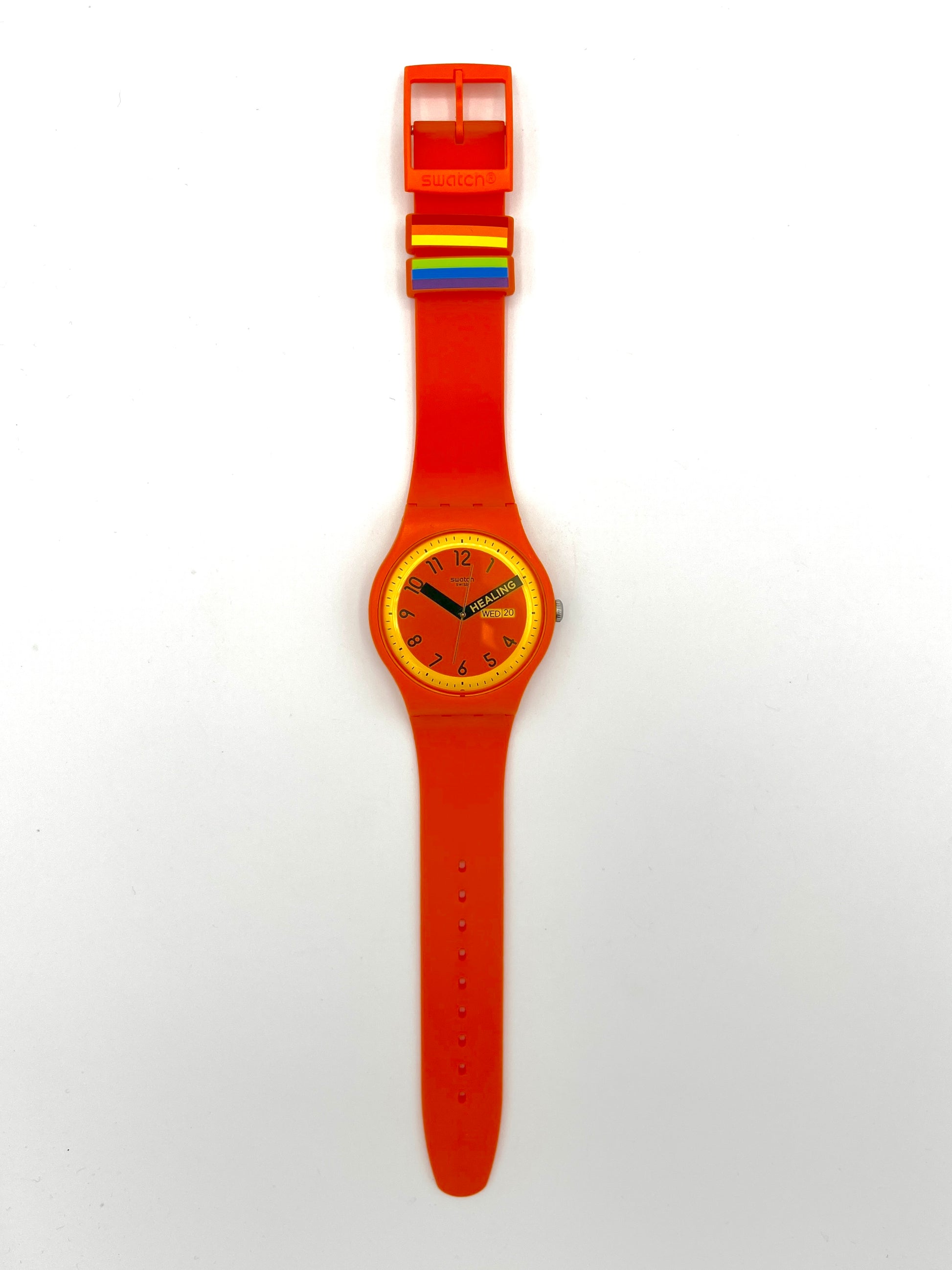 All watches sold by SwatchVintage.nl are guaranteed to be 100 percent original. Many are unworn old stock or restored with care, and all come with a new battery installed. If a watch has any notable aging, discoloration, or fragility in components such as the strap or casing, this is clearly stated in the listing.