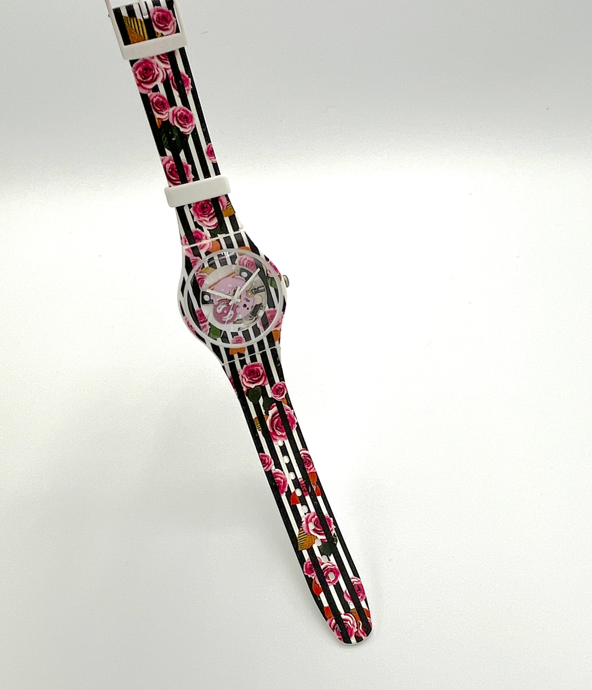 Unique Rose Design – A beautiful design with roses scattered all over the strap, dial, and case.