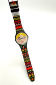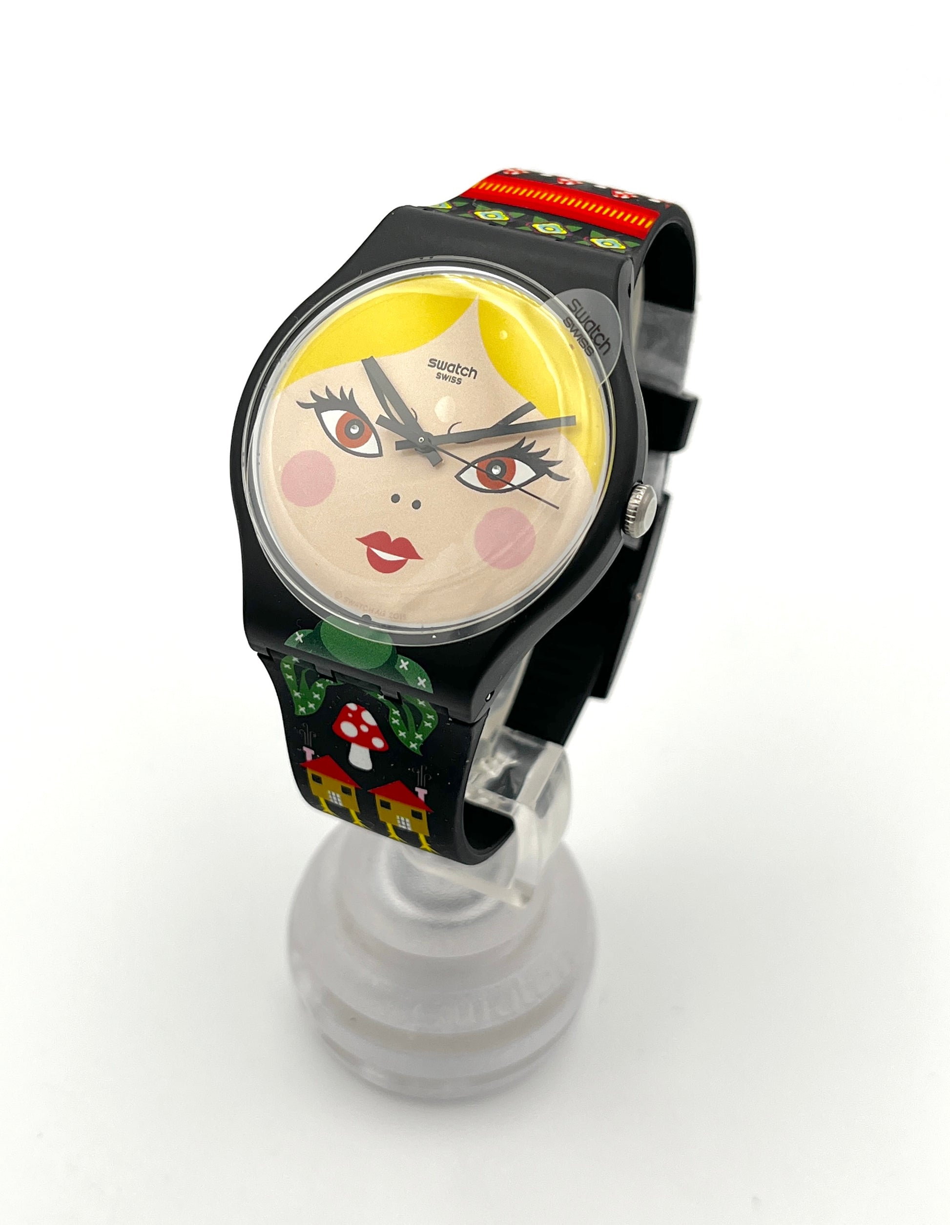 2016 New Gent Collection – The design of the Swatch New Gent RUSSIAN BEAUTY is inspired by Russian matryoshka dolls. Overall, it is a very colorful watch with a friendly doll face on the dial. Typical patterns of the wooden figures are printed on the black silicone strap.