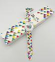 Unique Strap Design – Features a multicolored triangle pattern with logo detail.