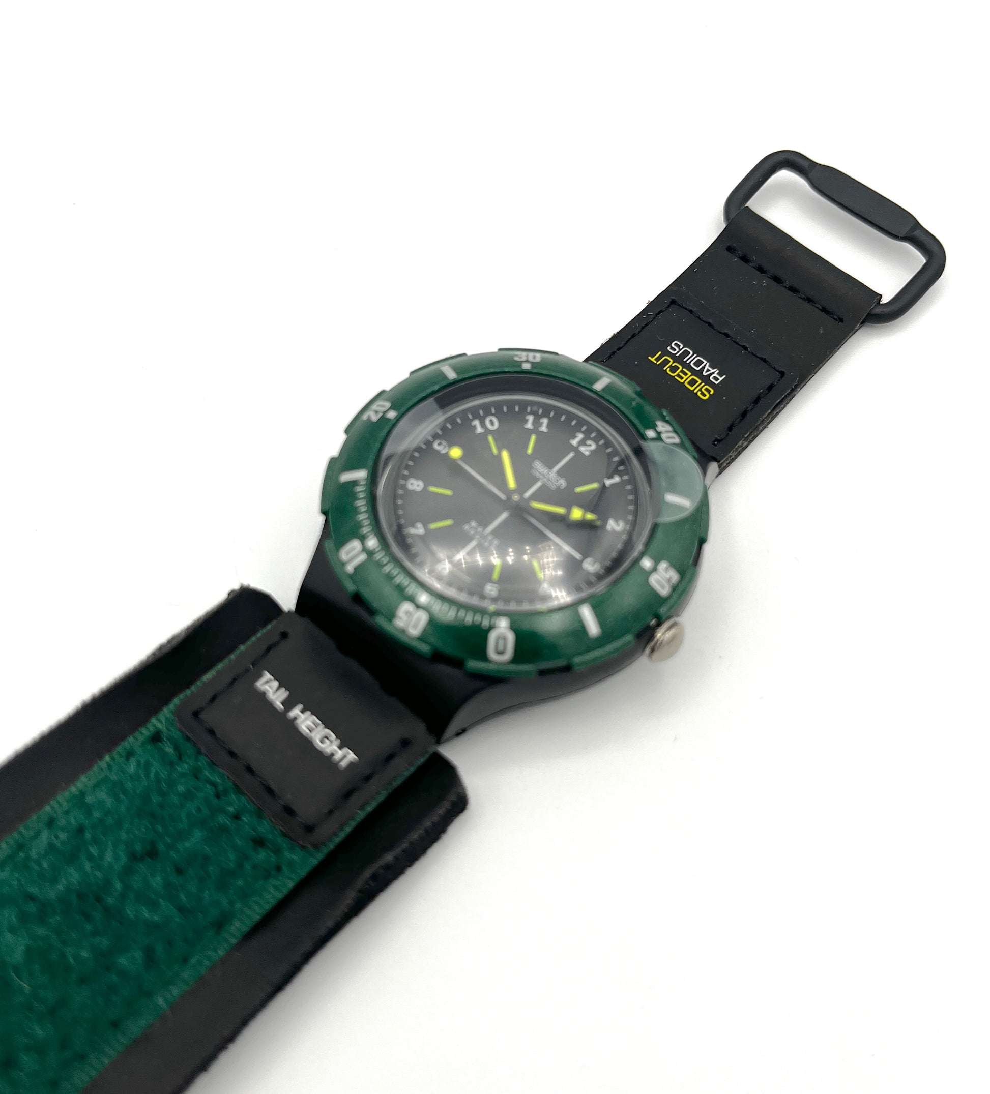 Velcro Design – The green, comfortable Velcro strap has a wide lining, making the watch even less noticeable on the wrist. This sought-after classic is from the 1998 model year.