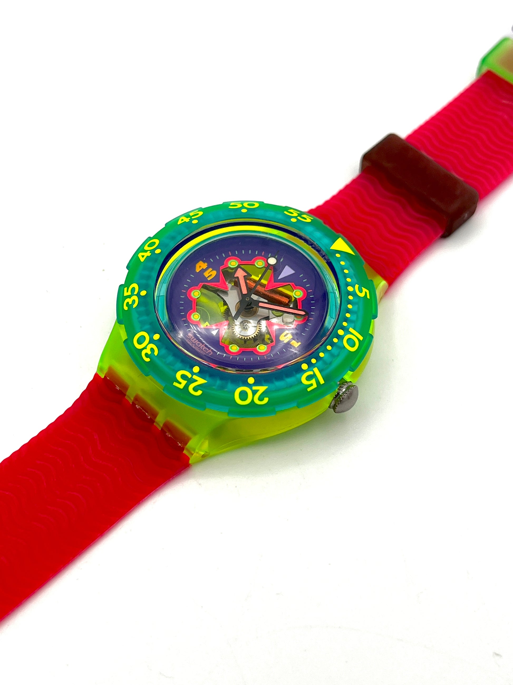 All watches sold by SwatchVintage.nl are guaranteed to be 100 percent original. Many are unworn old stock or restored with care, and all come with a new battery installed. If a watch has any notable aging, discoloration, or fragility in components such as the strap or casing, this is clearly stated in the listing.