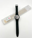 Solar PoweredThis Swatch Solar SRK103 is called MOONSHINE SRB100 and is from the very first collection that was launched in 1995. Its design is kept entirely in black and white. It was never removed from its case and its in 100% perfect running condition. It is a rare Swatch item and this piece is actually the first time we have this fully black watch in stock.