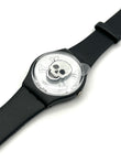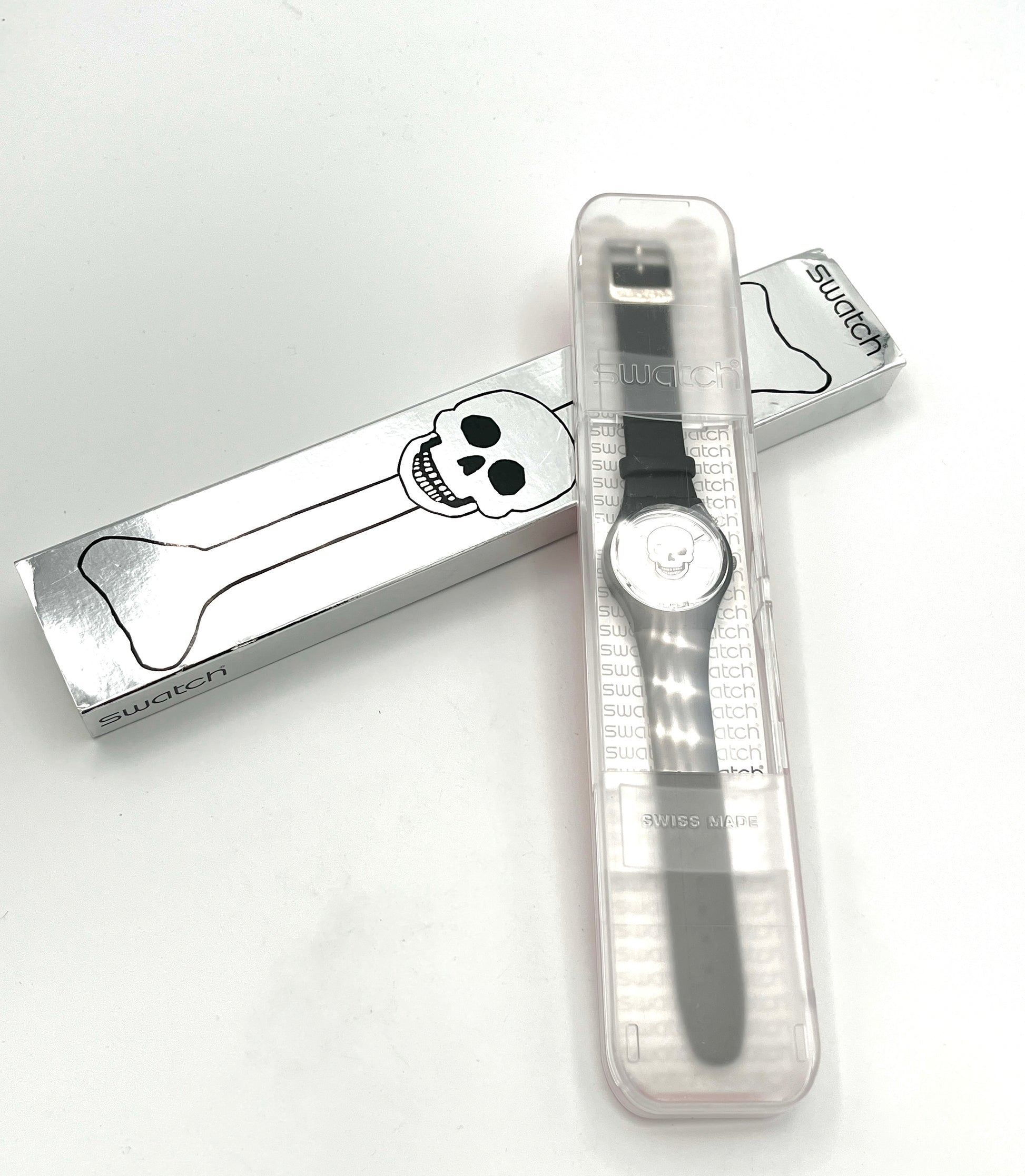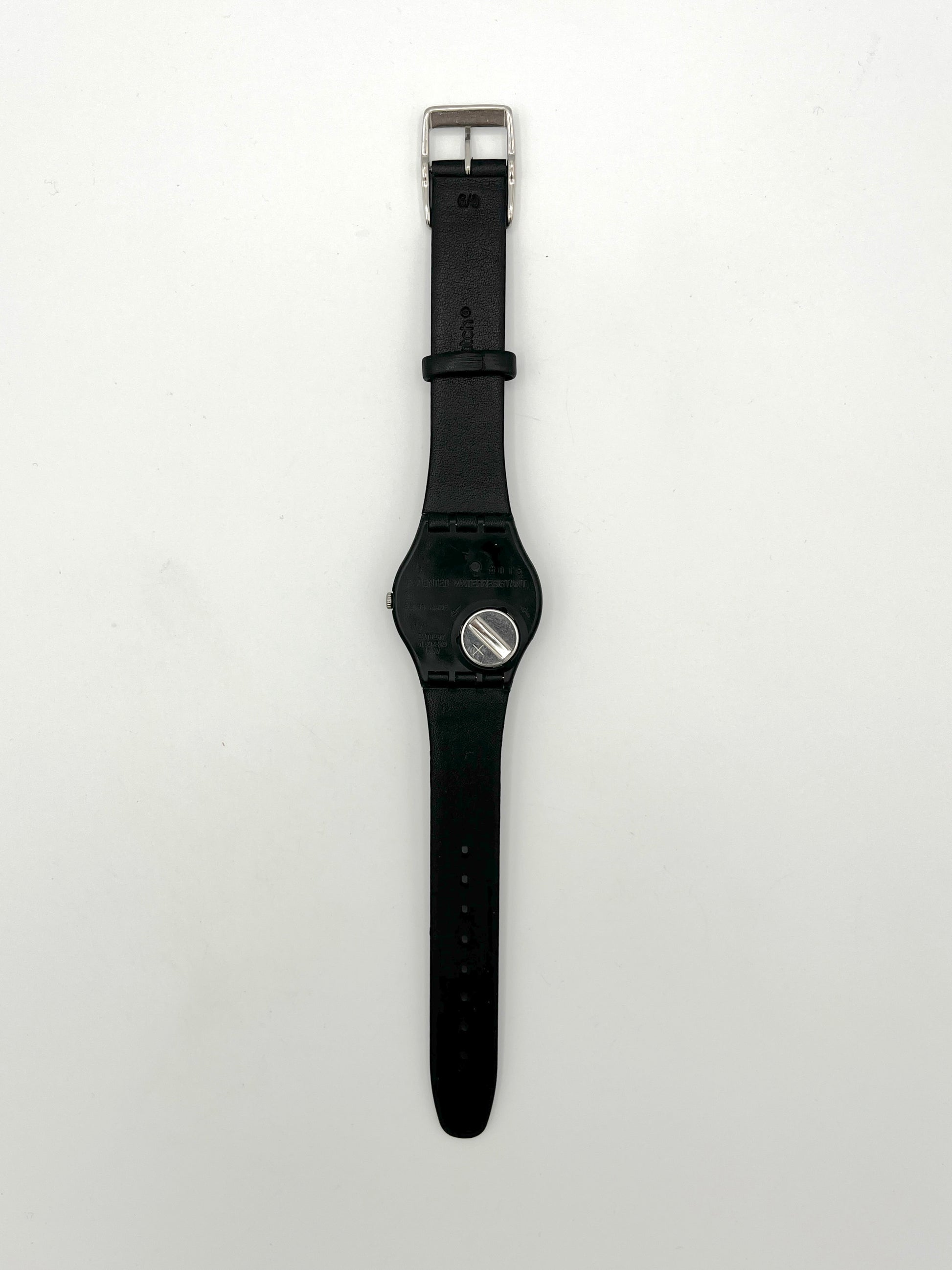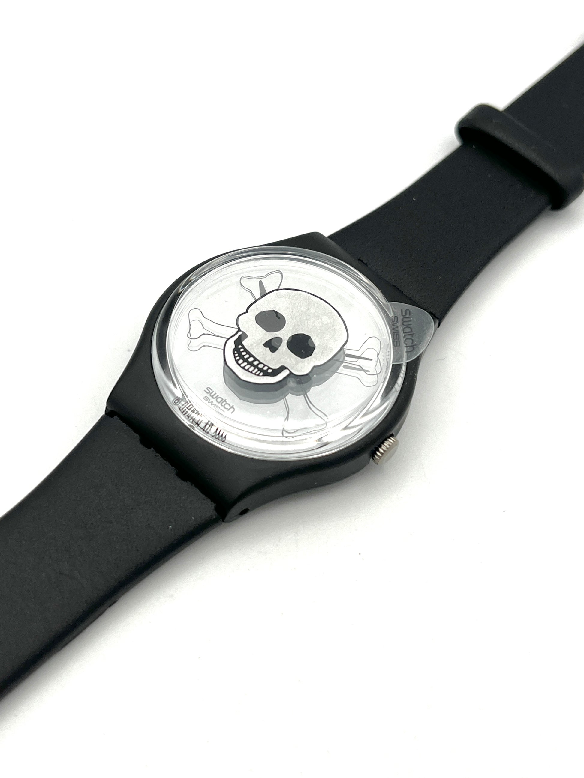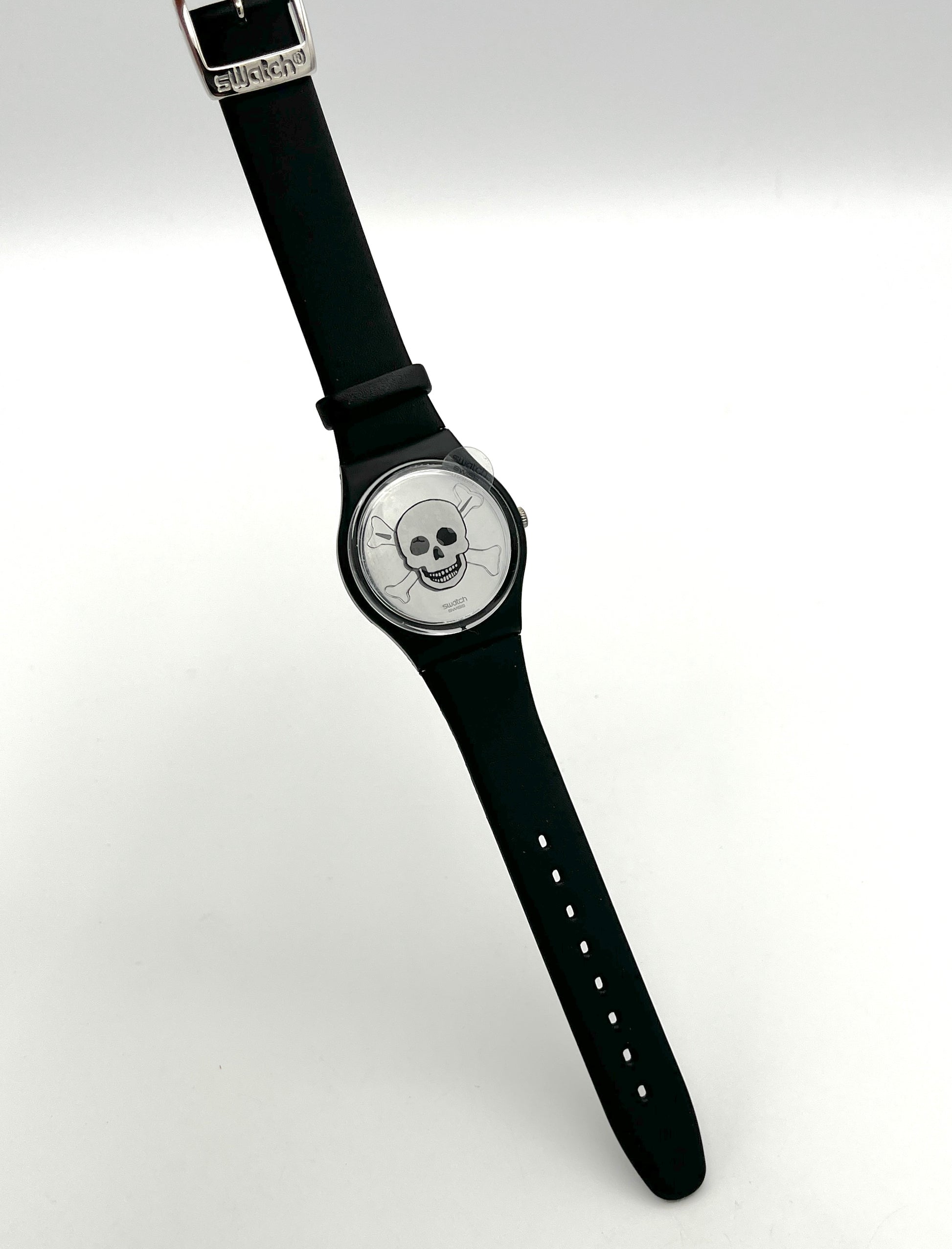 Highly Sought-AfterThe fantastic Swatch Gent YOU STOP YOU DIE stands out thanks to its striking silver dial featuring a skull. The time is displayed with the bones around the skull. The leather strap is completely black and fastens with an elegant silver metal clasp. The case of this Gent is black. The watch is water-resistant and has an accurate quartz movement with battery.